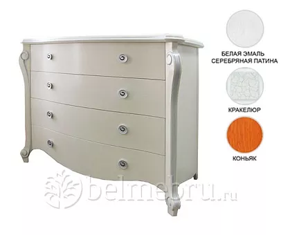 Отделка: цвета — « коньяк», «белая эмаль + серебристая патина», «кракелюр», лак – на водной основе.