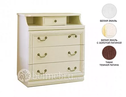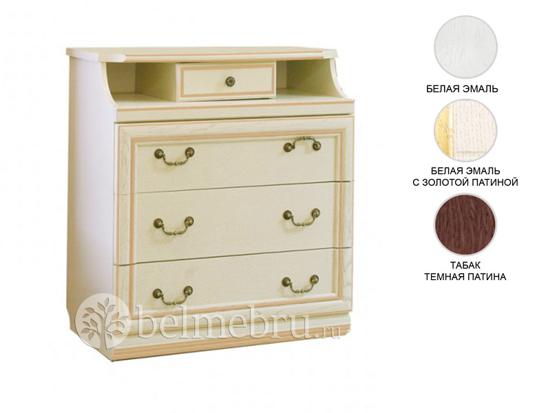 Отделка: варианты цвета — «белая эмаль золото», «белая эмаль», «табак+тп», лак — на водной основе.