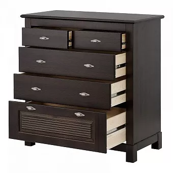 Комод Рауна 221 выполнен из массива сосны. В нижней его части можно хранить постельное белье, в ящиках посередине - одежду. Украшения, косметика и другие мелочи всегда будут под рукой в двух верхних отделениях.