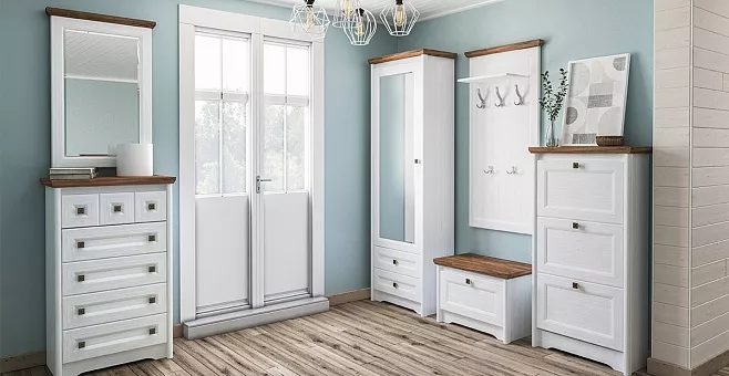 Коллекция мебели Тиволи в скандинавском стиле, совмещает в себе черты уюта и практичности. В мебели используется два основных цвета: белый со структурой под дерево, и для создание контраста идёт тёмный цвет с текстурой дуба. Такая цветовая гамма мебели легко впишется в большинство интерьеров и будет идеальным решением для владельцев любой квартиры или дома.