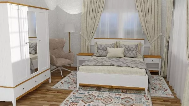 Коллекция включает предметы мебели для всех основных помещений дома: кровати, бельевые шкафы, туалетные столы, посудные шкафы и тумбы и тд.