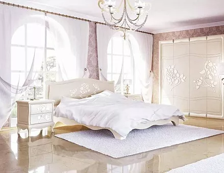 Спальня станет отличным решением для тех, кто ценит природную красоту материалов и натуральные формы, так как поверхность всех модулей спальни повторяет естественную структуру крашеного дерева. Цвет фасада - «крем крашенное дерево» – МДФ-16мм, спинка МДФ-54мм Kronospan Szczecinek (Польша) + ПВХ Alfaterm (Италия). Цвет ЛДСП - «крем», 16мм, 25мм Kronospan Szczecinek (Польша), соответствие с нормами EN 316 и требованиями норм EN 622-5. Фасад шкафов по периметру обрамлен массивной волнообразной рамкой. Бесшумное закрывание дверей с использованием д/п демпфера Hettich (Германия). Комплектуется штангами и полками, есть возможность 2-х вариантов внутренней сборки. Царги - 25 мм. Подъемный механизм 800 N для ящика. Основание: двуспальная кровать – ортопедическая решетка, Тахта - ДСП. Ручки – металл. Выдвижные ящики оснащены бесшумными направляющими с доводчиком Quadro–Hettich (Германия). Открытие зеркальной дверки происходит по принципу «маятника». Крепление – полкодержатель «пеликан». Цвет кромки – «крем». Столешница ЛДСП - «крем», 25мм, Kronospan Szczecinek (Польша) Комплектуется дополнительно полкой П-2