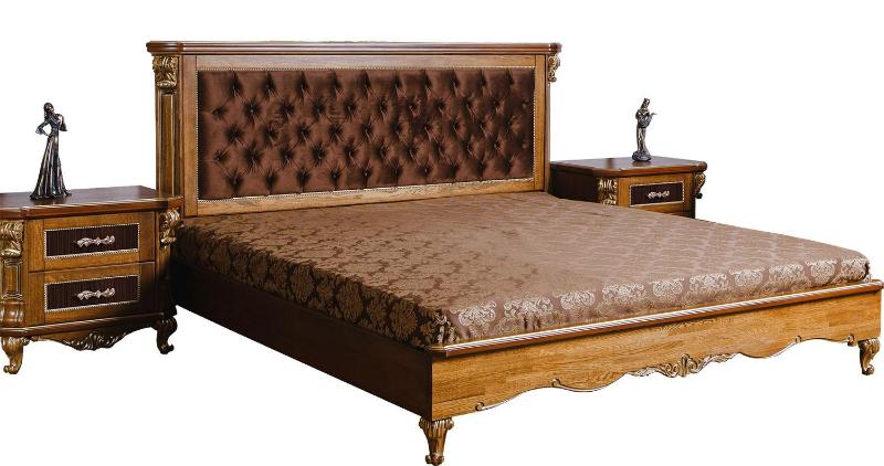 Кровать двойная "Альба 16/1п" П 524.05/1 палисандр (с зол., с сер.) фабрики Пинскдрев в классическом стиле характерна массивность, основательность и пышность форм. Альба является классическим примером мебели из массива дуба. Она включает в себя мебель для
