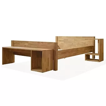 Без прикроватной тумбы. Кровать выполнена в скандинавском стиле, из массива дуба. Спинки в изголовье и изножье практически одной высоты, но это не портит внешнего вида, а как бы подчёркивает основательность и прочность кровати. Кровать прекрасно подойдет, как для загородных домов, так и для городских квартир.