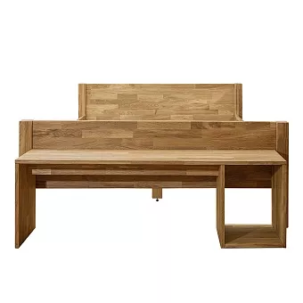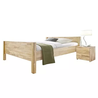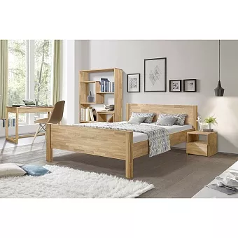 Без тумбочки. Кровать выполнена в скандинавском стиле, из массива дуба. Спинки в изголовье и изножье практически одной высоты, но это не портит внешнего вида, а как бы подчёркивает основательность и прочность кровати. Кровать прекрасно подойдет, как для загородных домов, так и для городских квартир.
