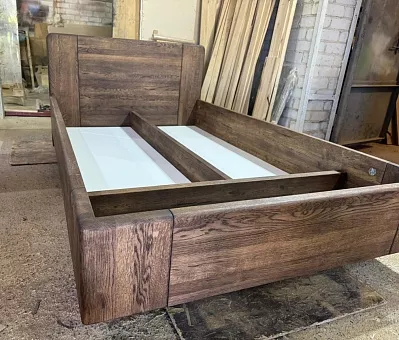Высший сорт (цельноламельный щит без сучков или других пороков дерева). Кровать поставляется в комплекте с решеткой и подъемным механизмом. Дно выполнено из оргалита и имеет ребра жесткости из массива дуба срашенного типа. Также кровать может быть укомплектована интегрированными прикроватными тумбочками подвесного типа ( крепится к царге) Высота изголовья 930 мм Высота царги 270 мм Растояние от пола до низа царги 130 мм от пола до верха царги 400 мм Утапливаемость матраса 100 мм. Можно изготовить под заказ с изменением размеров.