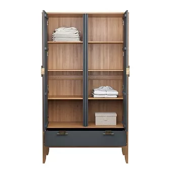Производится полностью из массива сосны в трех цветовых вариантах: белый лак, браун/белый лак, браун/серый лак 7012. В варианте браун/белый лак и браун/серый 7012 в коричневый цвет окрашен корпус предмета мебели, фасады могут быть белого либо серого цвета на выбор покупателя. В варианте белый лак весь предмет окрашен в белый цвет.
