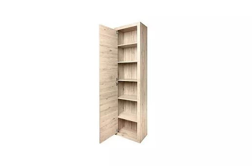 Шкаф 1DM OSKAR. Универсальность и удобство модуля заключается в том, что он не занимает полезную площадь помещения, но при этом остаётся вместительным и функциональным; помогает организовать молодёжную комнату, возможность использования в качестве дополнительного элемента в спальне и прихожей, а также в других помещениях. Шкаф 1DM имеет прямую конструкцию. Конструкция элемента представляет собой одно отделение с полками из ЛДСП за глухой дверью (1D). Дверь распашная, крепится на петли к боковому корпусу изделия.