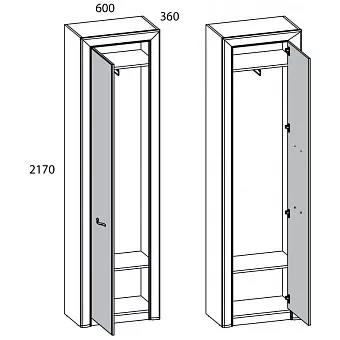 Шкаф 1DW OLIVIA по конструкции представляет собой шкаф-пенал. Станет удобным дополнением в организации хранения предметов одежды в любой по функционалу комнате. Отличается от шкафа 1D – у шкафа 1D представлено отделение с полками переставными. Шкаф 1DW имеет прямую конструкцию. Конструкция представляет гардеробное отделение с двумя нишами и выдвижной штангой. Дверь – распашная, крепится на петли к боковому корпусу изделия.