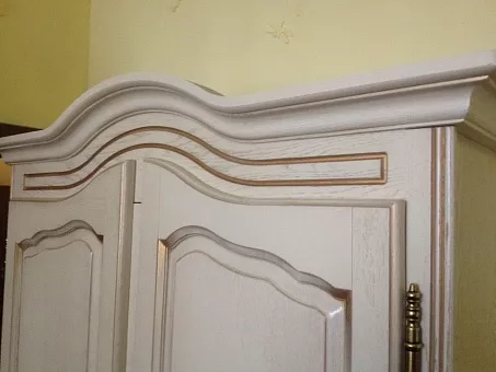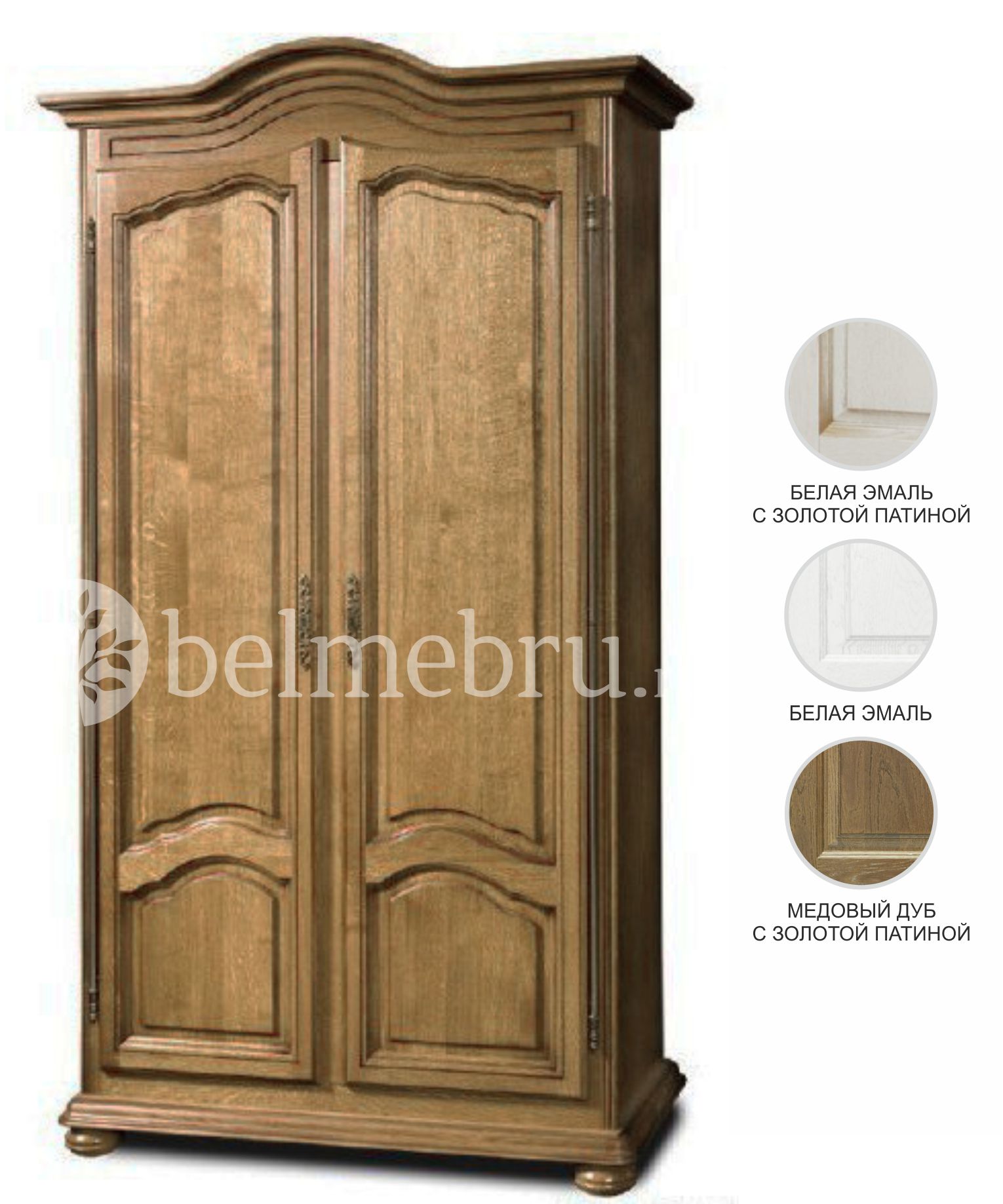 Отделка: варианты цвета «Медовый дуб + з.п.», «Белая эмаль», «Белая эмаль с золотой патиной», лак – на водной основе.
