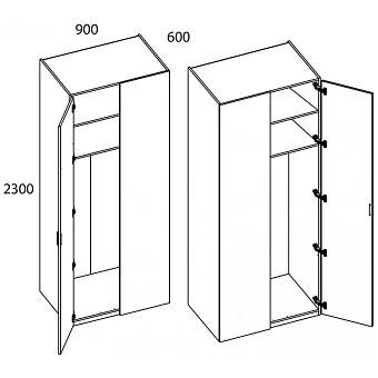 Шкаф 2DG/K90 MODERN. Конструкция данной модели позволяет оформить угловые шкафные группы для большей оптимизации пространства. Можно установить в любом помещении по функционалу – гостиной, спальне, молодёжной/детской комнате, прихожей или гардеробной зоне. Конструкция шкафа 2DG/K90 MODERN прямая, представляет одно отделение с двумя полками ЛДСП и стационарной штангой за одной глухой дверью и стенкой передней (стационарная). Дверь распашная, крепится на петли к боковому корпусу изделия. Угловая композиция получается за счёт присоединения элементов шкафной группы глубиной 600 мм к стенке передней посредством крепежа. Особенностью элемента являются глубокое гардеробное отделение, стильность, использование петель с доводчиками, высота – 2300 мм, установка угловой группы, практичная матовая текстура – персидский жемчуг.