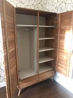Низ - два выдвижных ящика, верх: одна половина -ниша со штангой для вешалок, вторая - пять полок Производство: Россия Материал: массив дуба Отделка: морилка, масло Форма поставки: в собранном* виде Вес (кг): 140,00 Объем (м.куб.): 1,21 Количество пакетов: 1 Габариты (ширина*глубина*высота):1200*550*2000Коллекция мебели Aachen (Аахен) из цельноламельного массива дуба для спальни и гостиной. Стиль авангард. Двенадцать предметов. Особенность дизайна данной коллекции – радиусные элементы R90 мм в угловых соединениях и ручках.На мебель устанавливаются петли и шариковые направляющие с плавной доводкой. Есть возможность изготовления по индивидуальным размерам заказчика.