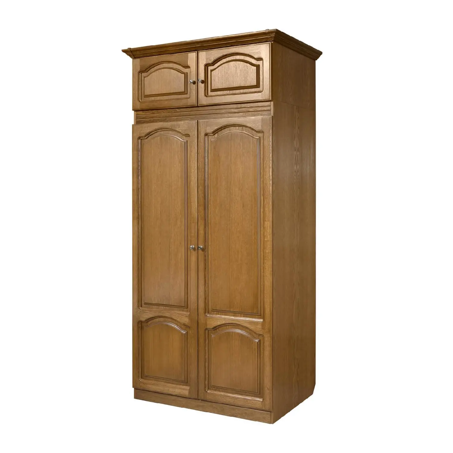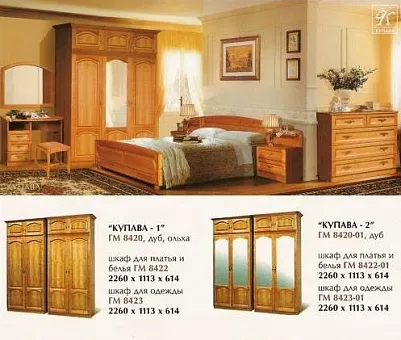Особая обработка фасадов позволяет увидеть натуральную структуру массива дуба, а искусно выполненная резьба подчеркивает его достоинства. Два больших зеркала не только дают возможность увидеть себя в полный рост, но и визуально расширят пространство комнаты.За двумя створками расположилась штанга, чтобы повесить одежду и множество полочек, чтобы разложить вещи. Сверху находятся два ящика антресоли, а снизу – полки для обуви. Красивая резная консоль сверху дополняет классические формы модели.Можно подобрать четыре варианта цвета: сочную «вишню», благородный «темный орех», нежный «светлый орех» и изысканную «слоновую кость». Сделать правильный выбор помогут наши консультанты, которые быстро оформят покупку и договорятся о ее доставке по нужному адресу. Шкаф для одежды ГМ 8422 Вариант 03- это Хит на долгие года. По нашей статистике 75% людей купивших что то из этой серии приходят к нам в магазин еще раз за покупкой из серии Купава. Это говорит о том что данная мебель Гомельдрева является прекрасным в соотношении цены и качества. И тот факт, что данная серия без каких либо изменений делается на фабрике вот уже более 10 лет, говорит о том что покупатели в восторге от нее.