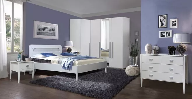 Фасад набора мебели, крышки комода и тумбы прикроватной, выполнены из плит МДФ, каркас из плит ДСП.