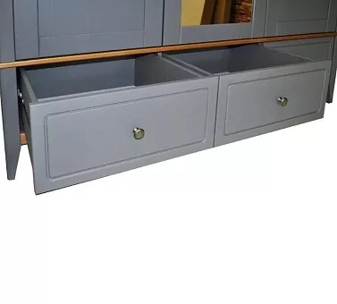 Задние стенки и днища ящиков – из ДВП. Выдвижные ящики оснащают направляющими частичного выдвижения, без доводчиков. Дверные петли Hettich имеют доводчики для плавного закрывания.