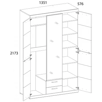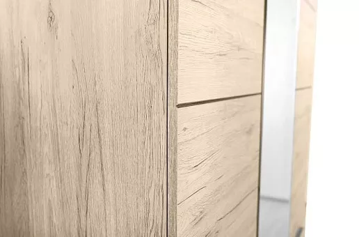 Материал: ЛДСП – 16 мм, цвет – дуб санремо 350 SWN; зеркало на среднем фасаде – 4 мм (общая толщина фасада – 20 мм).