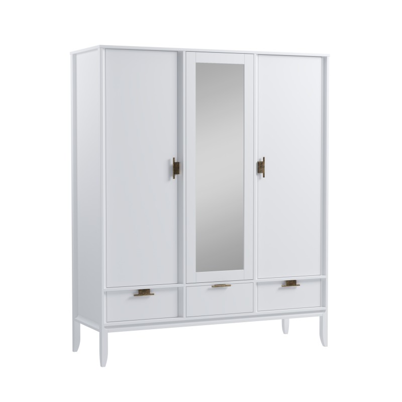 Шкаф 3х дверный Бридж с зеркалом белый лак