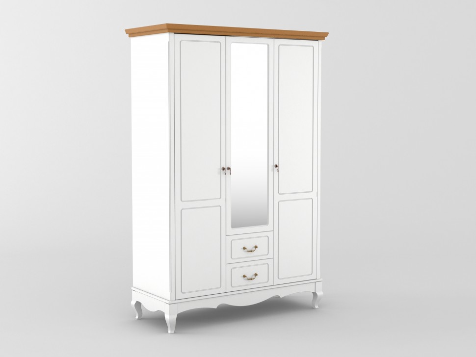 Шкаф Арредо 3-х створчатый изготовлен из бука+МДФ, в стиле прованс. В стандартной комплекации имеет 3 секции. В левой и правой секции - 4 бельевые полки, в центральной - штанга для вешалок и 2 выдвижных ящика. Петли Boyard без доводчиков. Направляющие на ящиках Boyard в базовой комплектации без доводчиков, установка доводчиков на ящики за дополнительную плату. Также возможно изготовление с декором и патенированным декором на фасаде. Ручки металлические (Турция). Возможно изготовление в нестандартном размере, подробности уточняйте у менеджеров.