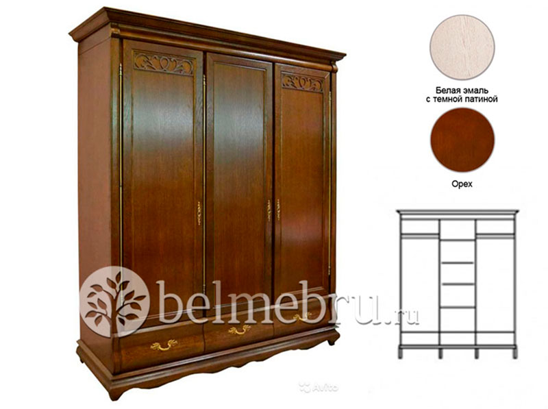 Отделка: лак — на водной основе, варианты цвета – «орех», « белая эмаль + патина тёмная». Вес изделия 280 кг.