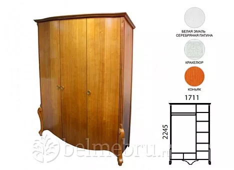 Отделка: цвета — « коньяк», «белая эмаль + серебристая патина», «кракелюр», лак – на водной основе.
