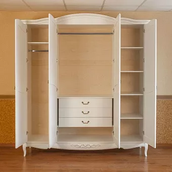 Мебель серии Belverom выполнена в стиле прованс и отлично впишется как в квартиру, так и в загородный дом. Плавные формы и резные элементы определяют гармоничность и романтический характер стиля. Широкая линейка модулей позволяет самостоятельно выбрать нужные элементы и создать свою уникальную комнату: спальню, кабинет, гостиную, детскую. Основные материалы коллекции:массив бука, березы и элементы МДФ, что определяет её надежность и долговечность. Коллекция выпускается в 3-х цветах: белый, слоновая кость, чёрный, а также выкрас по Ral. Дополнительно сделать: золотое или серебряное патинирование. Все кровати укомплектованы ламелиями. Фотография на сайте может не передавать точный тон изделия.