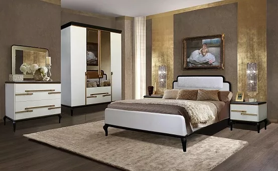 Шкаф для одежды Милана ММ-338-01/04 НАБОР МЕБЕЛИ ДЛЯ СПАЛЬНИ «МИЛАНА» ММ-338 В этом наборе соединились классика и современность. Прямые линии фасадов подчёркивают изящество ножек и резного карниза. Привлекает и создаёт уют отсутствие острых граней: кромки боковин, крышек и карнизов скруглены.