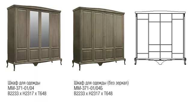 Шкаф для одежды Монако ММ-371-01/04 НАБОР МЕБЕЛИ ДЛЯ СПАЛЬНИ «МОНАКО» ММ-371
