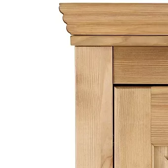 Как и другая мебель из этой коллекции, модель обработана водными лаками и красками. Это необходимо для того, чтобы предотвратить попадание внутрь излишней влаги, которая может спровоцировать появление плесени и грибков. Обработка сохраняет исходный рисунок дерева, безопасна для здоровья, не выделяет токсичных веществ и используется в Европе даже для изготовления игрушек для детей.
