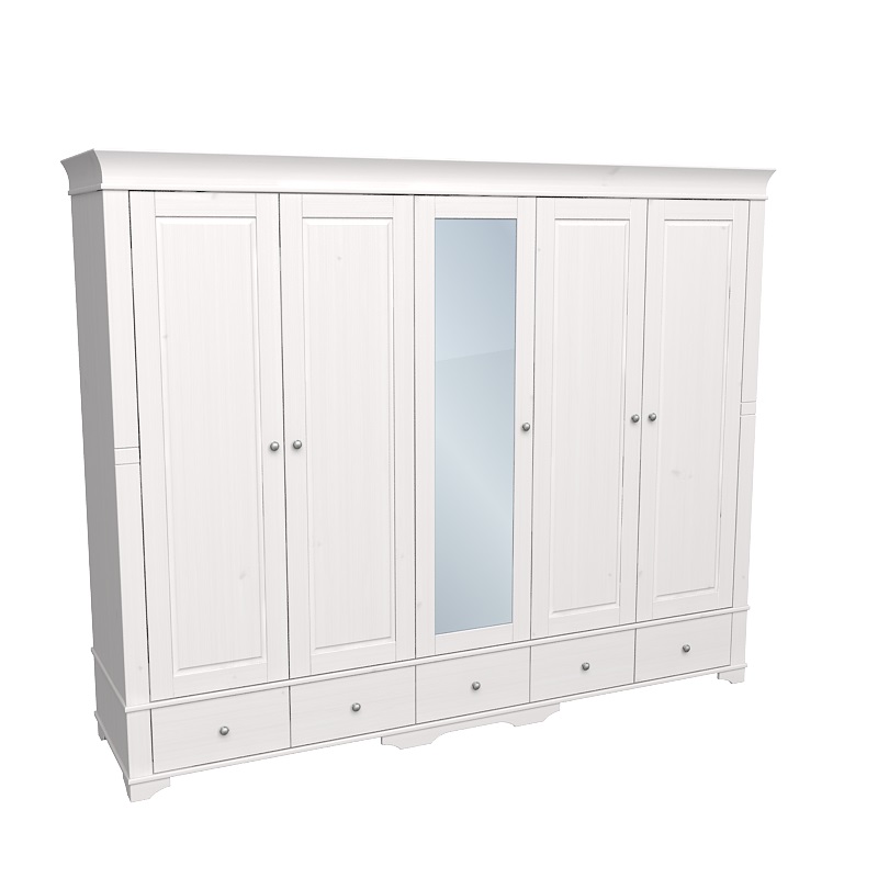 - Артикул Шкаф 5-ти дверный с 4 глухими дверями и 1 зеркальной дверью Бейли