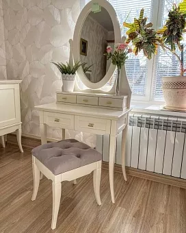 Дамский набор Римини выполнен из бук+МДФ, в стиле прованс. Имеет два выдвижных ящика в столе и три ящика в надстройке. Направляющие на ящиках Boyard в базовой комплектации без доводчиков. Дополнительно возможна установка с доводчиками. В набор входит: Зеркало ш.500 х в.800, Надстройка ш. 710 х в.125 х г.150, Столик ш. 800 х в. 750 х г. 450. Ручки металлические. Возможно изготовление в нестандартном размере, подробности уточняйте у менеджеров.