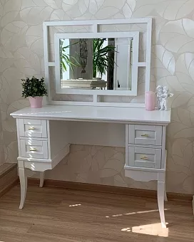 Дамский набор Римини выполнен из бук+МДФ, в стиле прованс. Имеет четыре выдвижных ящика. Задняя стенка изготовлена из оргалита. Направляющие на ящиках Boyard в базовой комплектации без доводчиков. Дополнительно возможна установка с доводчиками. Ручки металлические. Возможно изготовление в нестандартном размере, подробности уточняйте у менеджеров.