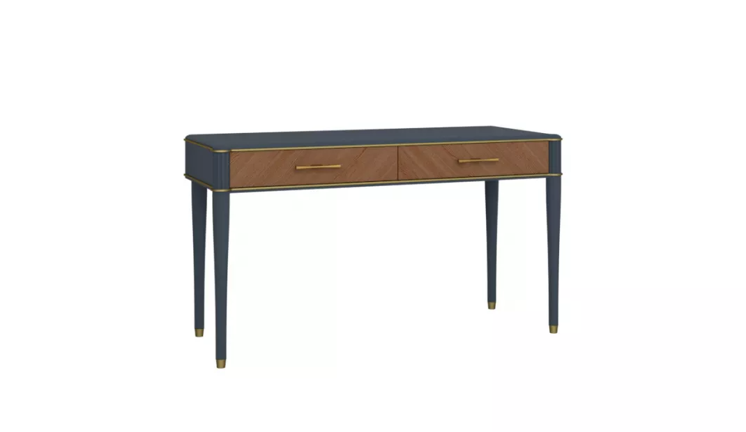 Тиволи выполнен из массива дуба, плит ДСП и плит МДФ. Вертикальные бруски из массива дуба и накладки ящиков из плит МДФ имеют декоративную фрезеровку, точеные ножки из массива дуба. Двери шкафов, накладки ящиков и основания спинок головных кроватей из плит ДСП имеют художественный набор шпона дуба. Крышки из плит МДФ облицованные шпоном дуба, стенки боковые из плит ДСП облицованные шпоном дуба, внутри ламинированные плиты ДСП. Стол туалетный Тиволи ММ-406-06 Вариант цвета «Серый антрацит», «Латте», лак на водной основе.