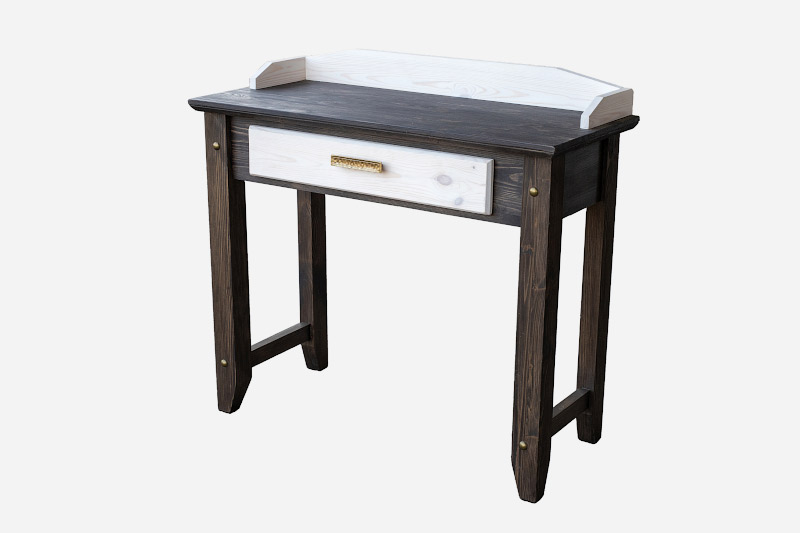 Мебель серии Калифорния изготовлена из натурального массива сосны. Столик туалетный имеет один выдвижной ящик. Изготавливается в 7 различных цветах: дуб, махагон, зелёный,африканский венге, прованс (серый), маренго светлый, палисандр. Тон мебели может отличатся от фотографии на сайте.