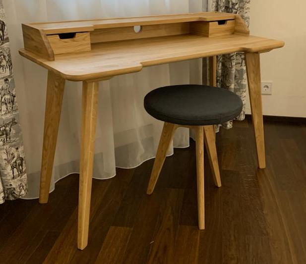 Данный Туалетный столик Lugo изготовлен полностью из массива дуба. 100% дерево во всех деталях. Это максимальная экологичность и безопасность вас и ваших близких при использовании. Мебель из массива дуба этой фабрики это залог здоровья и идеального сна и комфорта в использованни при хранении вещей. Туалетный столик Lugo из массива дуба для хранения вещей с двумя выдвижными ящиками. Оригинальная. люксовая австрийская фурнитура Blum. Туалетный столик Lugo из массива дуба прекрасно дополняет дизайн в вашей квартире, доме или даче, покрытие натуральным маслом. Цветовое исполнение: масло Saicos или OSMO (натуральный, отбеленный, венге). Так же есть возможность выбрать три варианта исполнения сращенный дуб/дуб цельноламельный/дикий дуб. Все различия приведены картинках а так же вы можете уточнить информацию у наших менеджеров.