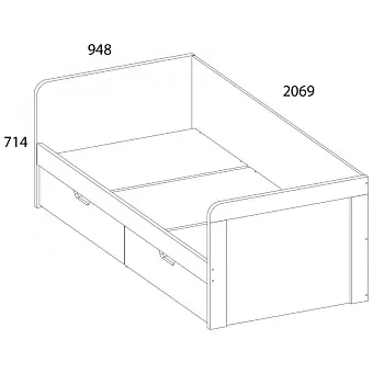 Кровать 90-2 MODERN - односпальная, размер спального места – 900*2000 мм, оформит зону отдыха и сна в молодёжной/детской комнате. Конструкция кровати 90-2 представляет собой корпус с бортами, два выдвижных ящика, основание (щиты ЛДСП). Такой вариант кровати очень удобен в эксплуатации - боковой борт будет сохранять целостность обоев или покраски, защищать от соприкосновения со стеной. А дополнительные выдвижные ящики организуют хранение для предметов постельного белья, покрывал, игрушек и других вещей.