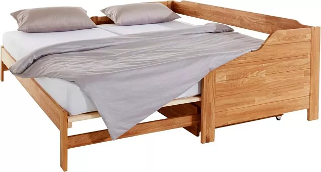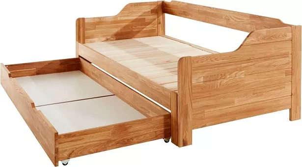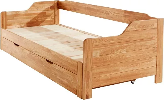 Кровать выполнена в скандинавском стиле. Смотрится современно и гармонично, благодаря простате своих линий и естественной текстуре дерева. Используется 100% массив дуба. Покрытие интерьерными маслами от компании Хенкель. 100% ЭКО отделка, масла не выделяют никаких токсичных частиц. Гарантия защиты и долговечности древесины, сохранение ее текстуры, внешнего вида. Выдвижные ящики на роликах. Вес изделия 67 кг                                                                                                                                                                                                                                                                                                                               Габаритные размеры: