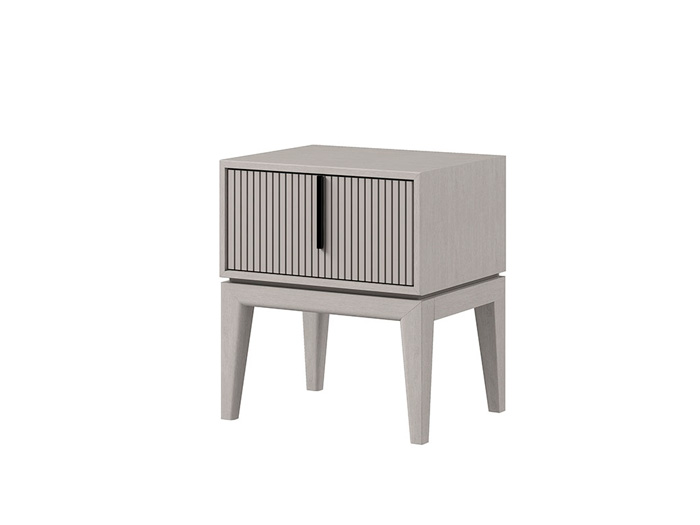 Фасады украшены вертикальными вставками. Фасады изготовлены из МДФ с фрезеровкой, опоры из массива березы.