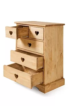 Серия PIN MAGIC выполнена полностью из массива сосны, обладает легким ароматом смолы. По цвету, материала и текстуре совпадает с сериями Саларис, Прованс старения, Калипсо, а так же с кухнями Кухня Волшебная сосна, Кухня Шампань. Поставляется в сборе.5 выдвижных ящика. Вес изделия 22 кг. Тон мебели может отличатся от фотографии на сайте. Ручки как изображено на картинке.