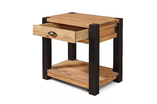 Тумба выполнена из массива сосны. Имеет 1 выдвижной ящик. Ножки 60х60. В комплекте ручки "Ракушки", возможно изготовление без отверстий. Массив сосны. Задние стенки и донышки ящичков - наборная вагонка, сосна.