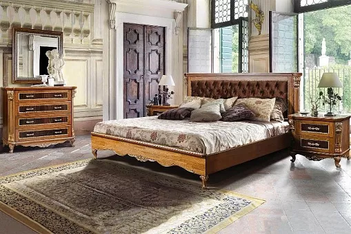 прямых линиях, а также большим количеством сложных декоративных деталей в виде «короны» декоративных опор и пилястр. Украшением мебели служат элементы резьбы, инкрустации, имитация позолоты.