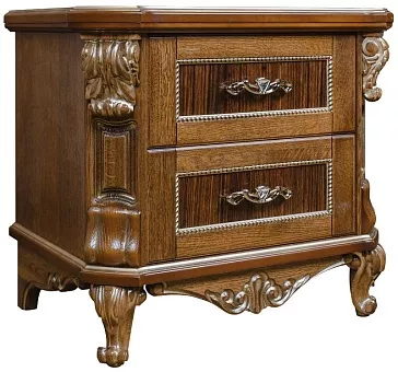 Тумба прикроватная "Альба 03с" П 524.03с палисандр (с зол., с сер.) фабрики Пинскдрев в классическом стиле характерна массивность, основательность и пышность форм. Альба является классическим примером мебели из массива дуба. Она включает в себя мебель для