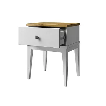 Высокие ножки придают тумбочке легкость и современный стиль, делая её универсальной для различных интерьеров. Один выдвижной ящик на телескопических направляющих полного выдвижения обеспечивает легкий доступ к содержимому и позволяет удобно хранить необходимые мелочи.