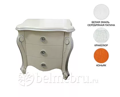 Плавные линии, изогнутые поверхности, изящные ножки придают спальне утончённость и женственность. Кровать манит к себе мягкой спинкой, очаровывает и не отпускает. Изящный туалетный столик с секретом, когда часть крышки лёгким движением руки становится зеркалом. Изделия имеют несколько цветовых решений: классический благородный — «коньяк», нежный, утончённый – «белая эмаль с серебряной патиной» и неординарный, удивительный – «кракелюр».