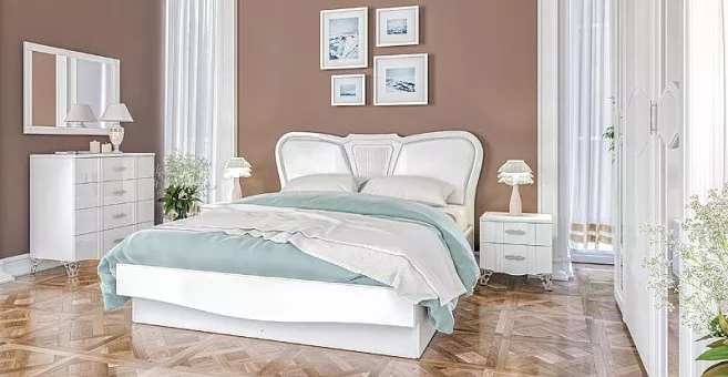 Коллекция «София» создана белорусской фабрикой Неман. Плавные изгибы, глянец фасада и необычные металлические детали дополнят интерьер в романтическом стиле. Фасад: МДФ-16мм, крышка МДФ-22мм Kronospan Szczecinek (Польша) + ПВХ Imawell (Германия).