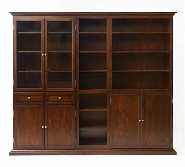 Мебель фабрики Tadorna Furniture, выполненная из массива березы в цвете: орех, темный орех. В материале массив берёзы/МДФ в цвете: слоновая кость, белый, с золотой и серебряной патиной. Также есть шкафы, которые могут компоноваться в "стенки". Варианты компоновок могут быть выполнены по индивидуальному заказу. Модульные шкафы между собой соединяются стяжками, а цоколь и корона крепятся на саморезы. Цоколи оснащены специальными ножками для регулирования по высоте. Мебель представляет собой превосходное сочетание классического стиля и современного качества. Идеально подходит для гостиной, кабинета и домашней библиотеки. Фотографии на сайте могут не передавать точный тон мебели, уточняйте у наших менеджеров.