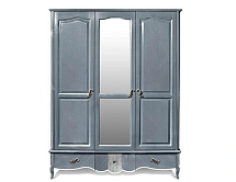 Набор выполнен с использованием шпона и массива дуба на лицевых поверхностях. Украшают набор: фигурный набор шпона, декоративные элементы с выдавленными полосками, подчёркивающими структуру древесины, волнообразные кромки нижних деталей, объёдиняющие все изделия в единую композицию. Зеркало навесное овальной формы прекрасно сочетается с таким же по конфигурации на шкафу. Внутренние поверхности деталей облицованы плёнкой с финиш-эффектом. Крышки из плиты ДСП, облицованной шпоном и бруском дуба с профильным фрезерованием по лицевым кромкам.