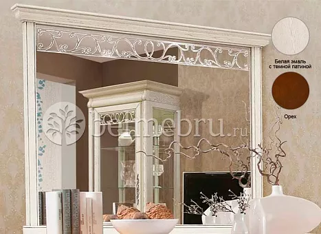 Отделка: варианты цвета — «орех» , «белая эмаль + патина тёмная», «венге+патина серебряная», лак – на водной основе. Вес изделия 36 кг.