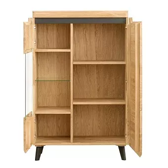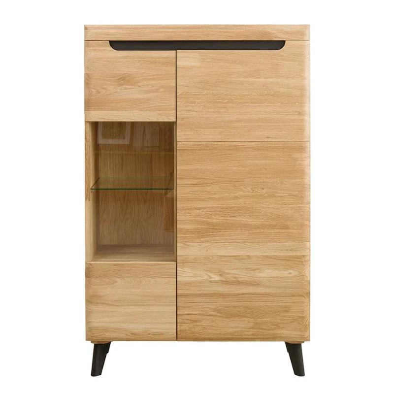 Серия Анталия выполнена в скандинавском стиле из массива дуба. Поступает в собранном виде. Каркас-массив дуб, фасад- массив дуб, стекло. Полки - массив дуб, стекло. Задняя стенка, дно ящиков - фанера, облицованная шпоном дуба. Фурнитурв: Петли с доводчиком GTV, подсветка светодиодная точечная AKS. Вес изделия 70 кг. Фотографии на сайте могут не передавать точный тон мебели, узнавайте у менеджеров.