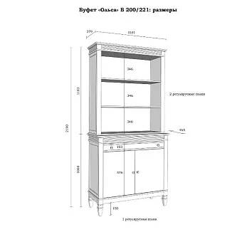Буфет выполнен из массива сосны. Удобный и вместительный, очень прост, но при этом функционален. Отлично впишется как в обеденную так и в гостиную. Буфет укомплектован двумя полками сверху, одной полкой снизу за распашными дверями и одним ящиком.