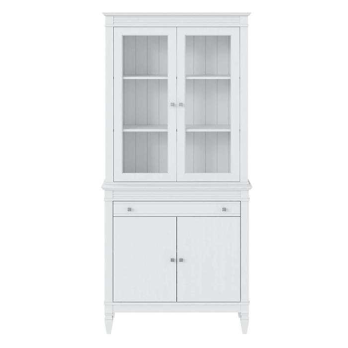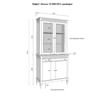 Буфет выполнен из массива сосны. Удобный и вместительный, очень прост, но при этом функционален. Отлично впишется как в обеденную так и в гостиную. Буфет укомплектован двумя полками сверху за стеклянными распашными дверями, одной полкой снизу за распашными дверями и одним ящиком.